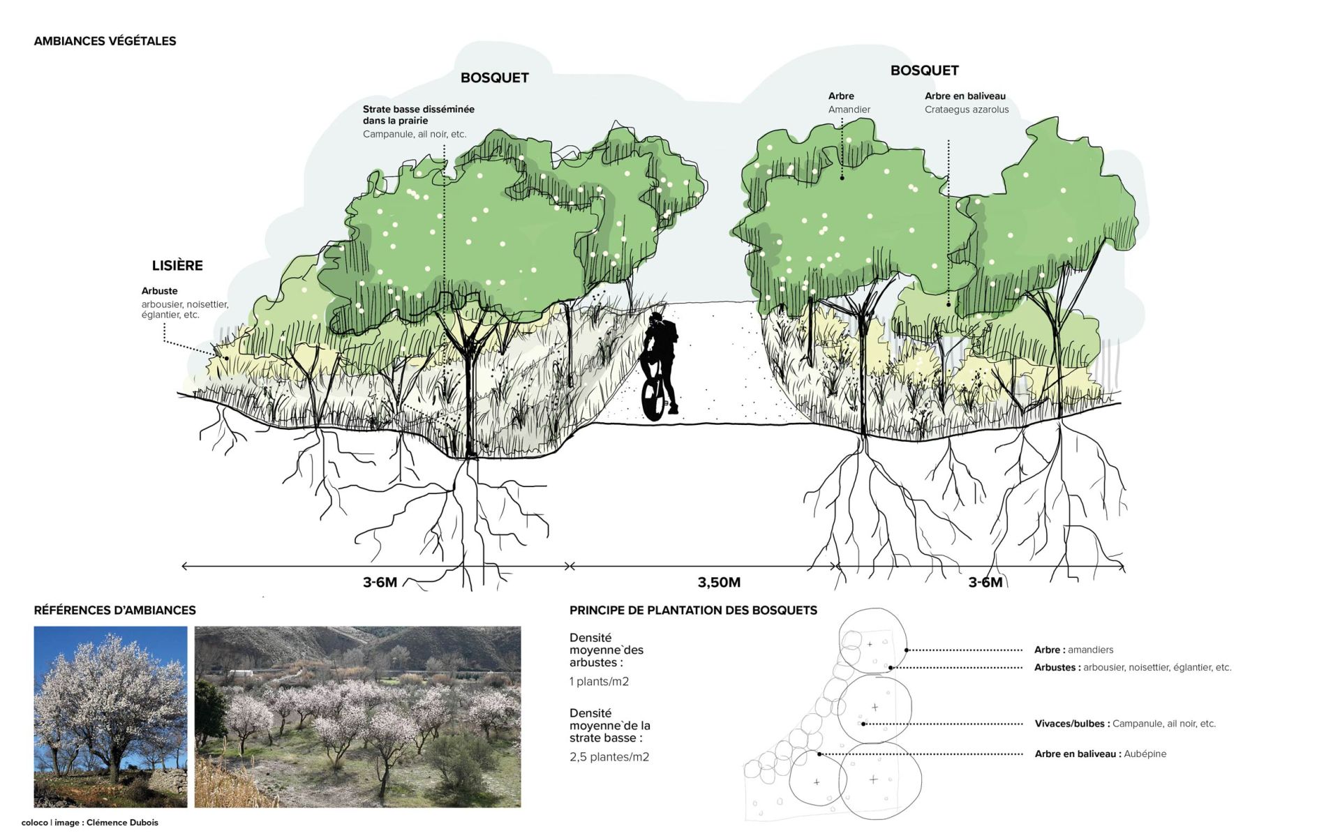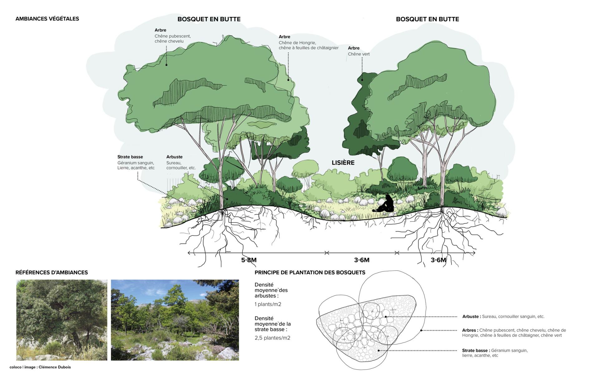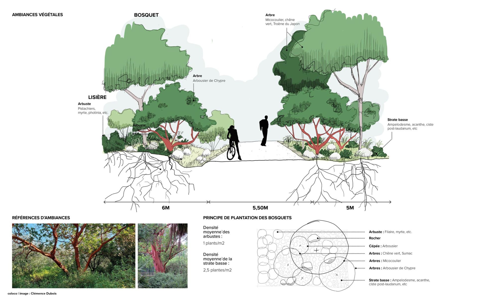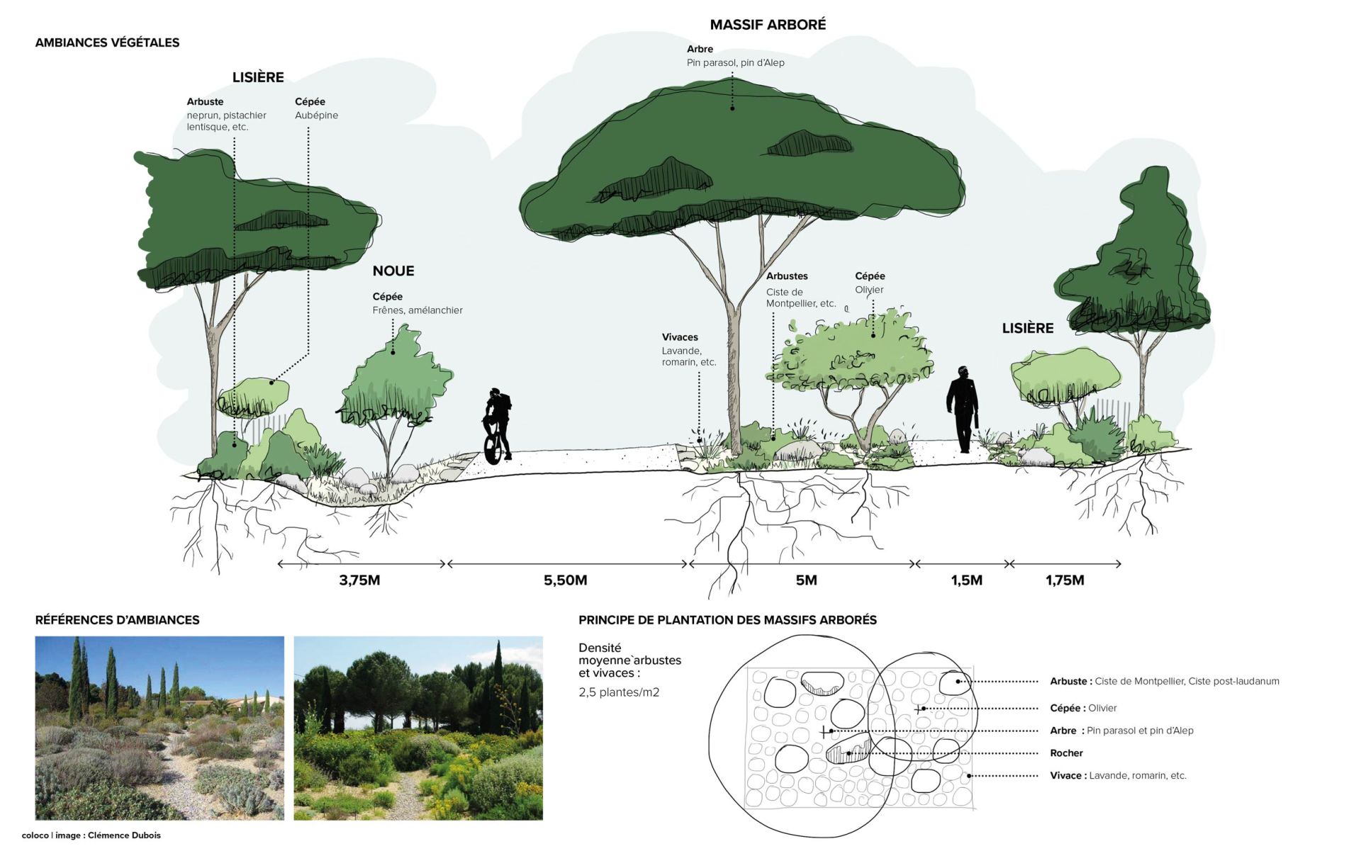 – Composer des typologies végétales d’essences méditerranéennes pour offrir une ambiance bioclimatique agréable aux habitants