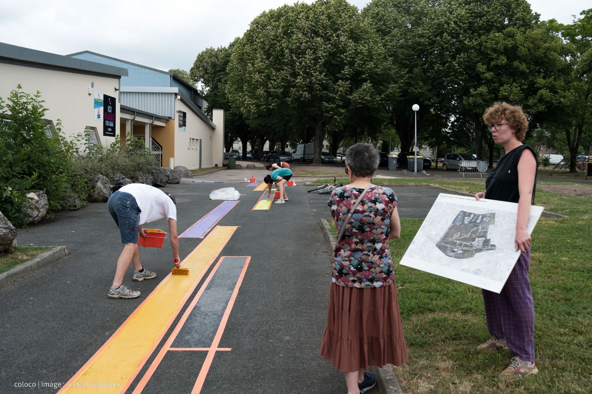 En juin 2025, une préfiguration publique activée par coloco a permis d’accueillir les habitants pour travailler les nouvelles entrées du parc des Groues, discuter du projet, acter le positionnement des premiers mobiliers et de prendre part à l’étiquetage des végétaux de la friche ou récemment plantés.
